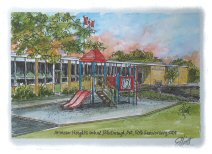 artist, George Elliott, has created this 4x6 inch 50th Reunion ink and